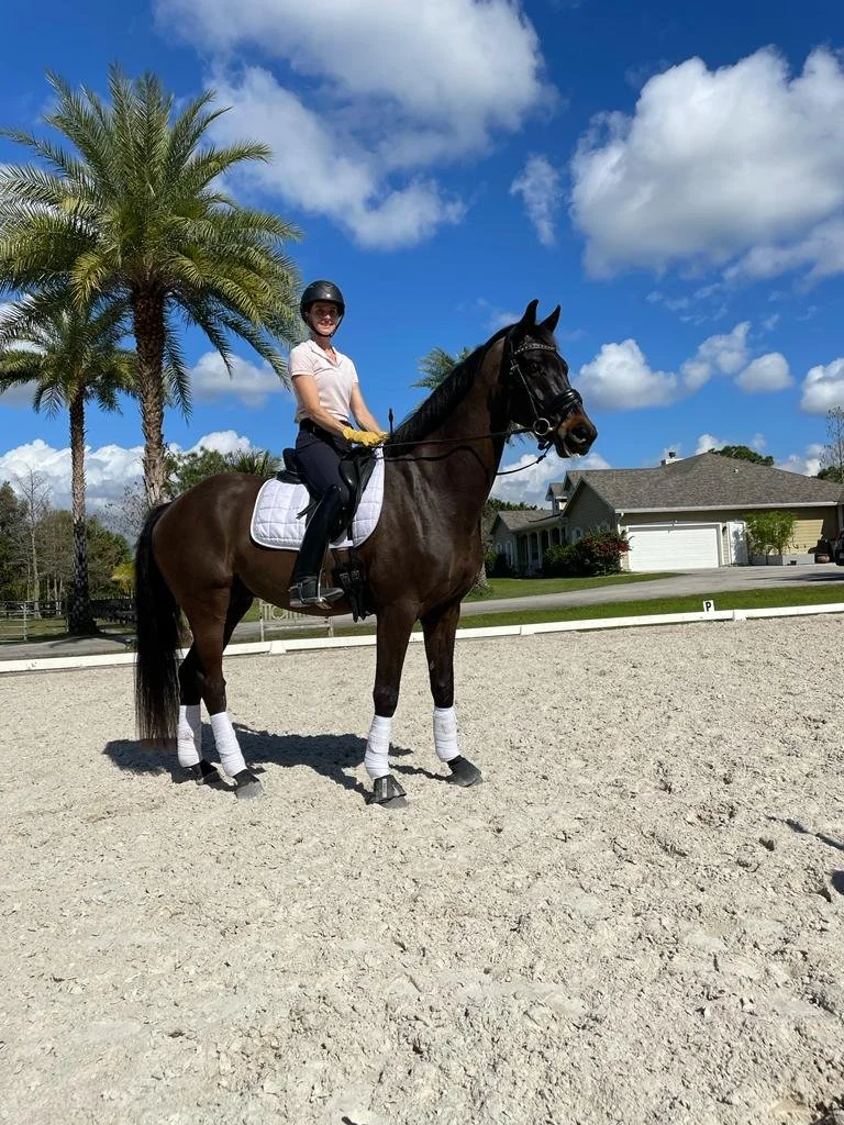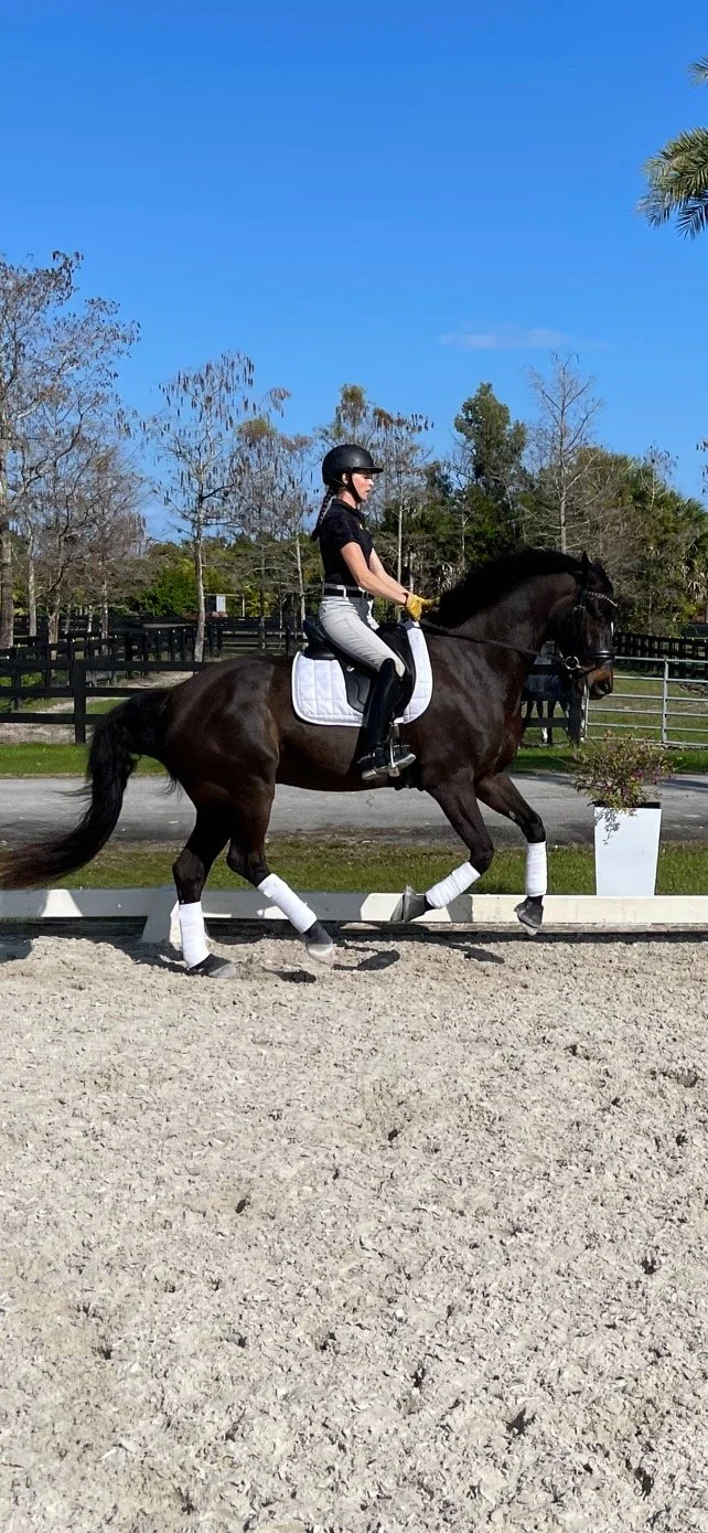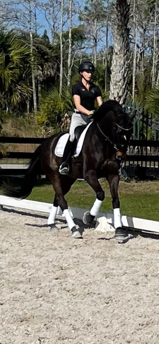 FUZION (Franklin- Totilas): is a 8 year old gelding 16h, dark bay with three fantastic gaits and excellent temper/rideability. Fuzion is showing 4th level at 67.7% and will be starting PSG soon.
